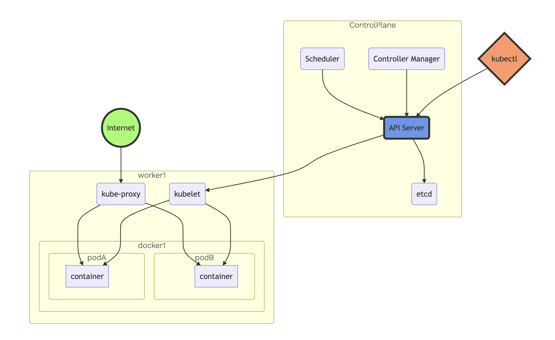 - Control-plane (which makes up the Control Plane) is the brains of the cluster